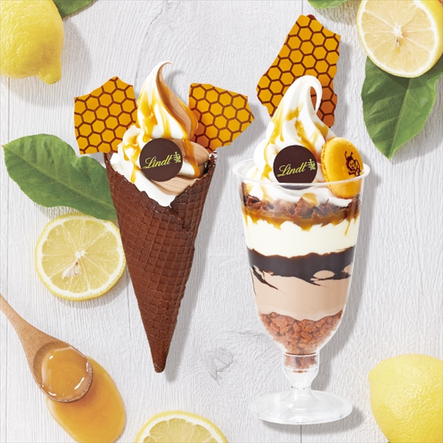 リンツ ショコラ カフェにて、夏季限定のソフトクリームとパフェ「マヌカハニーレモ