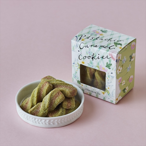 ■商品説明:ピスタチオ生地とキャラメル生地のクッキーを重ねてねじり、サクッとした食感に 焼き上げました。(9個)