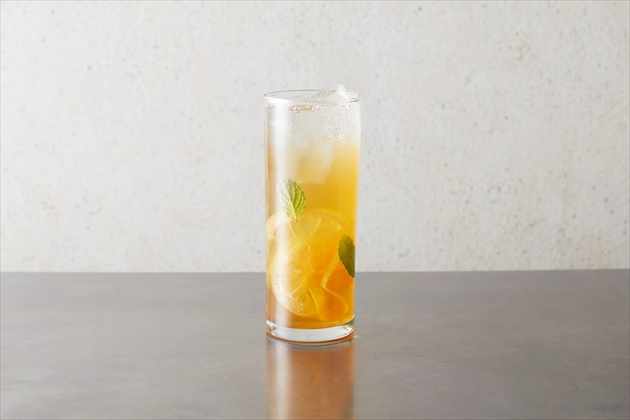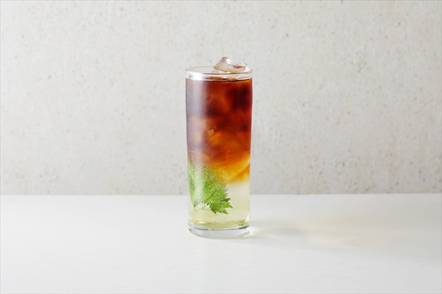 コールドブリューの華やかさに梅の甘くもスッキリした味わいが楽しめます。フレッシュな青紫蘇を合わせているため、モヒートのように香り高くスッキリとしたコーヒーカクテルです。コールドブリューと梅ソーダのカクテルのグラデーションのなかに佇む青紫蘇という見た目が、あたかも木の葉の隙間から陽が降り注ぐ木漏れ陽「コモレビ」のように見える、爽やかなサマーカクテルです。