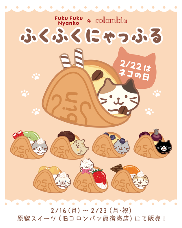 2月22日の「ネコの日」に合わせ、8日間限定の特別商品『ふくふくにゃっふる』 を、2月16日より、原宿スイーツ(旧コロンバン原宿)にて販売します。