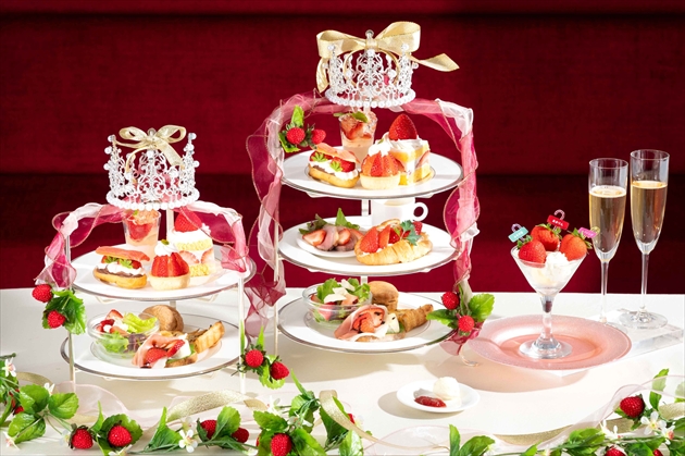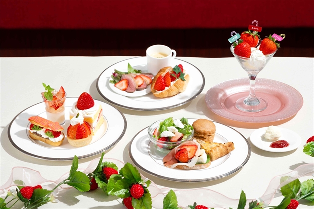 『第4回 お客様が選ぶ!!全国いちご選手権』で入賞した「あまりん」「ふさの香」「ラブソング」を使用し、それぞれの魅力を最大限に引き出したアフタヌーンティーセットや、3種のカップデザートをご用意しました。さらに、食感の変化が楽しめるモンブランやタルトなども登場。この季節だけの特別な味わいの数々をお楽しみください。
