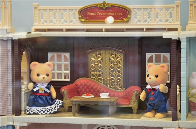 なお、同期間中、原宿本店サロンのショーウインドーには、細かな彫刻があしらわれたシックな色合いの建物と、細部までこだわった家具や小物が魅力のシルバニアファミリータウンシリーズを再現。