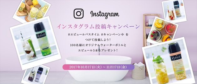 また『バブ エピュール』のボトルタイプ全5種類と、「エピュール ビューティー ウォーター」がご自宅でより一層楽しめる「エピュール ビューティー ウォーター ボトル」をセットで100名様にプレゼントするキャンペーンを実施します。