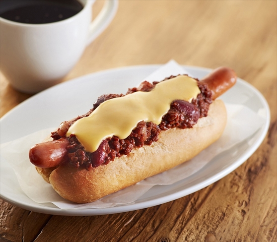 また、「ボールパークドッグ チリコンカンチーズメルト」は、レッドキドニー豆、インゲン豆、ひよこ豆が入ったチリコンカンソースを乗せ、食べごたえもしっかりと感じていただけるボールパークドッグです。ハラペーニョが入ったチェダー風チーズソースが、スパイシー感とコクをプラスします。