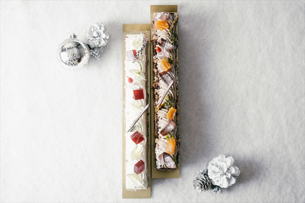 今年のクリスマスケーキはミニャルディーズでおなじみの『FLEUR(フルール)』のブッシュ・ド・ノエルに加え、新商品の『AROME(アローム)』も登場。